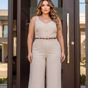 Macacão Longo Feminino Linho com Elastano Elegante e Confortável