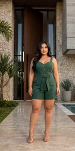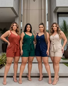 Macaquinho Feminino Linho com Elastano Confortável e Sofisticado