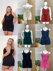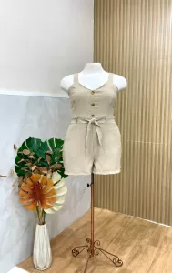 Macaquinho de short em Linho com elastano