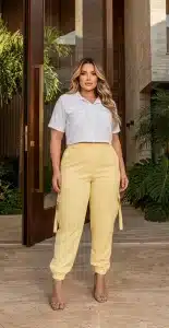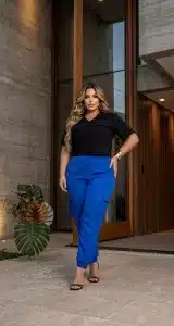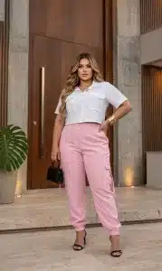 Calça Cargo Feminina Alfaiataria Prime com Elastano Cintura Alta Plus Size